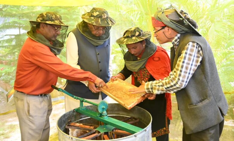 कृषि मंत्री जोशी ने कहा प्रदेश को शहद एवं सह-मौन उत्पादों के क्षेत्र में विशिष्ट स्थान दिलाने हेतु सरकार द्वारा 110 करोड़ से अधिक की लागत से मौनपालन नीति अनुमोदित की गयी है, जिसके अन्तर्गत विस्तृत वेल्यूचैन स्थापित करते हुए मौनपालकों तथा कृषकों को 80 प्रतिशत तक अनुदान से लाभान्वित करने की व्यवस्था की गयी है। उत्तराखण्ड में उत्पादित होने वाला शहद उच्च गुणवत्ता युक्त है। सरकार के विभिन्न प्रयासों के माध्यम से शहद उत्पादन के लिए किसानों को बेहतर सुविधाएं और प्रशिक्षण दिया जा रहा है। उन्होंने कहा सरकार का प्रयास है कि किसानों की आय दोगुनी हो उस दिशा में यह शहद उत्पादन से जुड़कर कृषक अधिक से अधिक लाभ प्राप्त कर सकते है। इस अवसर पर बागवानी मिशन के निदेशक महेन्द्र पाल, मुख्य उद्यान अधिकारी डा0 डी0के0 तिवारी, पिंकी स्वयं सहायता समूह से पिंकी, किरन आदि सहित अन्य अधिकारी भी उपस्थित रहे।