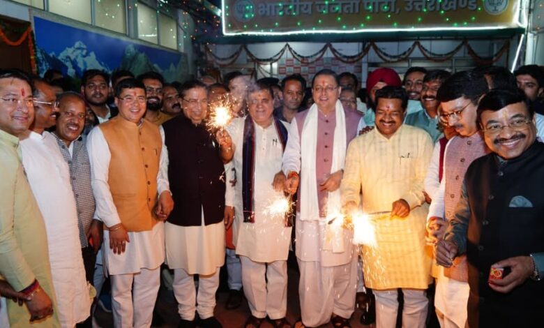 मुख्यमंत्री धामी भाजपा प्रदेश कार्यालय देहरादून में आयोजित दीपावली मिलन समारोह में हुए शामिल