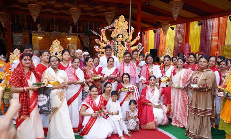 आज के कार्यक्रम में दशमी पूजा बिसर्जन एवं देवी ढौलाय गमन बीरबार 2 अक्टूबर 025 7ः45 सिन्दूर खेला 8रू30 ,बिसर्जन के लिए हरिद्वार प्रस्थान 10 बजे ,शान्ति जल एवं बिजय सम्मेलन 8 बजे रात्रि कालिन्दी पार्क कांवली