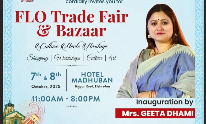देहरादून | फिक्की फ्लो उत्तराखंड अपने बहुप्रतीक्षित प्रमुख आयोजन “फ्लो ट्रेड फेयर एंड बाज़ार” के 9वें संस्करण का भव्य आयोजन 7 और 8 अक्टूबर 2025 को करने जा रहा है। इस आयोजन का नेतृत्व फिक्की फ्लो उत्तराखंड की अध्यक्षा डॉ. गीता खन्ना करेंगी। कार्यक्रम का आयोजन होटल मधुबन, राजपुर रोड, देहरादून में होगा, जो सुबह 11 बजे से रात 8 बजे तक चलेगा। बारिश को ध्यान में रखते हुए पूरा आयोजन इंडोर रखा जाएगा, ताकि आगंतुक बिना किसी असुविधा के इस कार्यक्रम का आनंद ले सकें। फ्लो उत्तराखंड की टीम ने सभी व्यवस्थाएँ इस प्रकार की हैं कि मौसम की परवाह किए बिना हर कोई आरामदायक माहौल में शॉपिंग, कला और संस्कृति का अनुभव कर सके। डॉ. गीता खन्ना ने कहा कि हमने यह सुनिश्चित किया है कि बारिश लोगों के उत्साह में बाधा न बने। पूरा आयोजन अंदर आयोजित किया जाएगा ताकि हर आगंतुक सुरक्षित और सहज वातावरण में इस भव्य मेले का आनंद उठा सके। यह दो दिवसीय आयोजन महिला उद्यमियों, शिल्पकारों और स्थानीय व्यवसायों को एक साझा मंच प्रदान करेगा और साथ ही भारत की समृद्ध सांस्कृतिक धरोहर और कला परंपरा का उत्सव मनाएगा। कार्यक्रम का मुख्य उद्देश्य महिलाओं की आत्मनिर्भरता, आर्थिक स्वतंत्रता और सशक्तिकरण को प्रोत्साहित करना है। इस मेले में आभूषण, जीवनशैली उत्पाद, हस्तशिल्प, गृह सज्जा, फर्निशिंग, फैशन और अन्य क्षेत्रों से जुड़े विशेष स्टॉल्स लगाए जाएंगे। “आर्टिजन हाट” में देशभर से आए 20 राष्ट्रीय स्तर पर प्रसिद्ध शिल्पकार अपनी कला का प्रदर्शन करेंगे, जिनमें पद्मश्री सम्मानित और यूनेस्को द्वारा मान्यता प्राप्त कलाकार भी शामिल होंगे। ये कलाकार लाइव डेमो और वर्कशॉप्स भी आयोजित करेंगे। भव्य उद्घाटन समारोह में गीता धामी मुख्य अतिथि के रूप में शामिल होंगी।